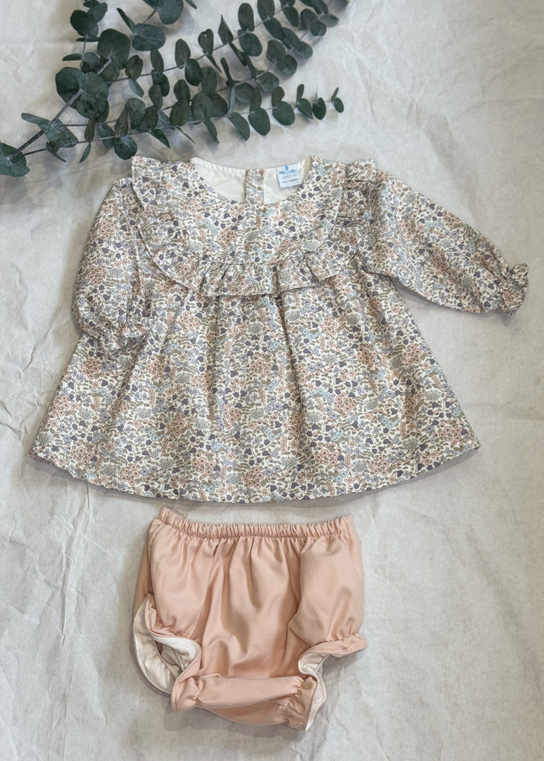 Jesusito para bebé niña con vestido en flores liberty y ranita en rosa