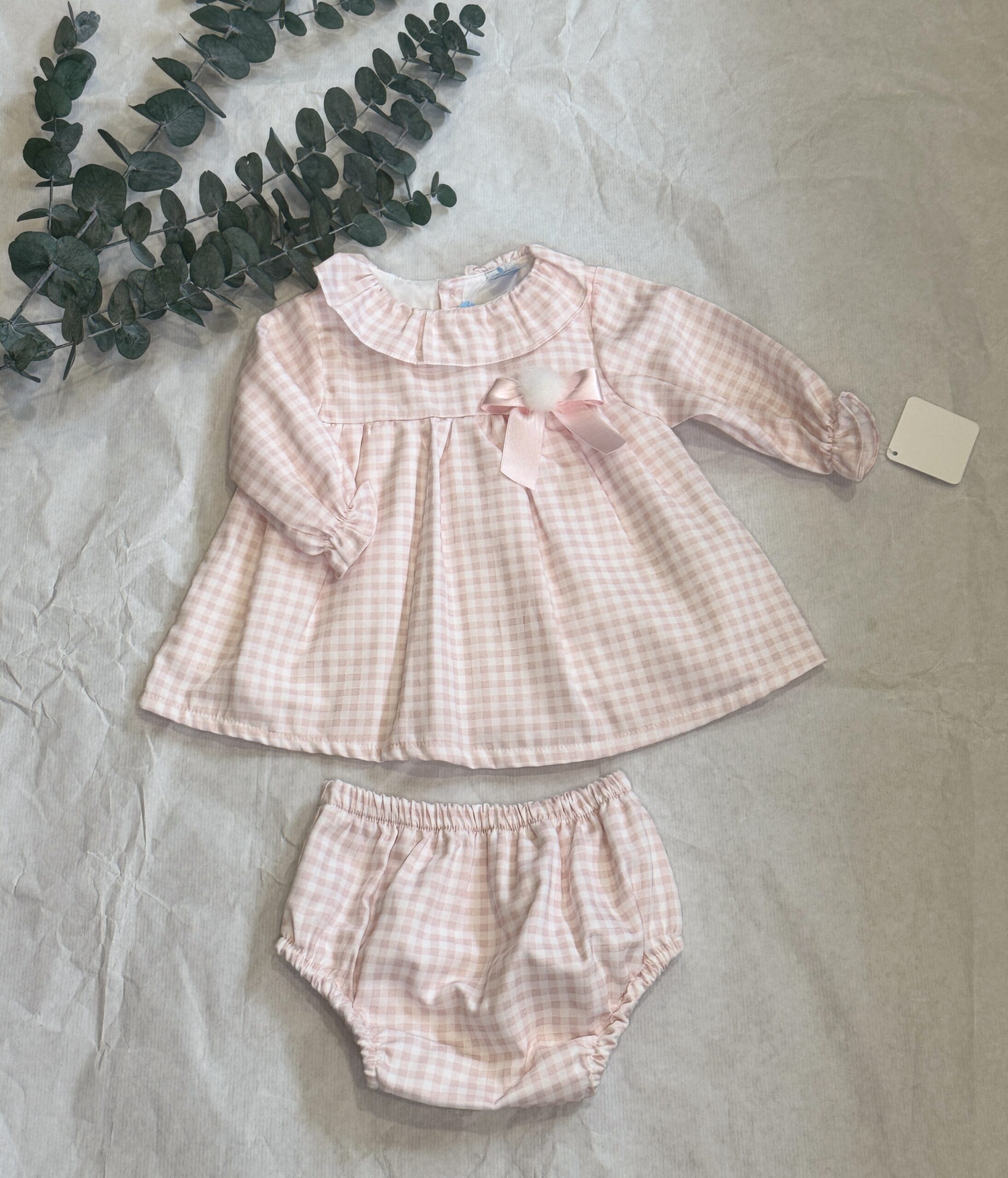 Braguita en cuadro vichy a juego con el vestido , interior forrado en algodón , gomas de cintura y piernas blanditas y amplias , para una mayor comodidad.